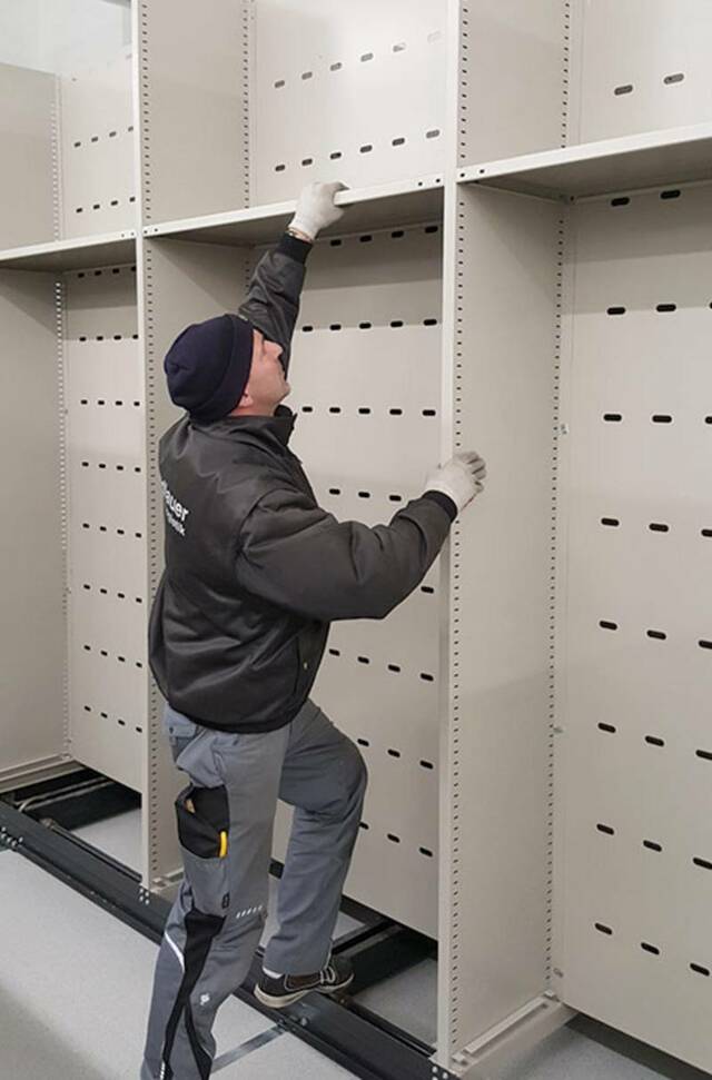 Die Regalsysteme sind das Rückgrat eines jeden Archivs. Unsere Fachkräfte sorgen daher für die professionelle Montage der Archivregale am neuen Firmensitz. Natürlich optimal getaktet und entsprechend der zuvor definierten Raumpläne. So kann umgezogenes Archivmaterial sofort nach der Montage passend eingeräumt werden.